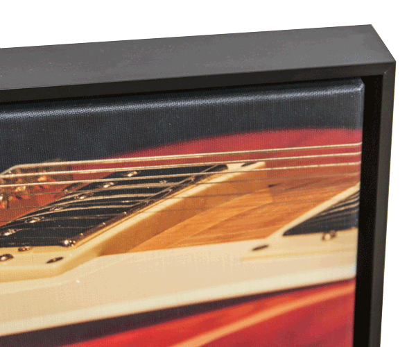 A floater frame is perfect for showcasing a canvas without covering the edges, or for creating a slim border. This L-shaped frame attaches to the back of the stretcher bars, leaving the entire front edge exposed. The frame is typically built 1/2" larger than the artwork, creating a 1/4" gap between the art and the frame on all sides.