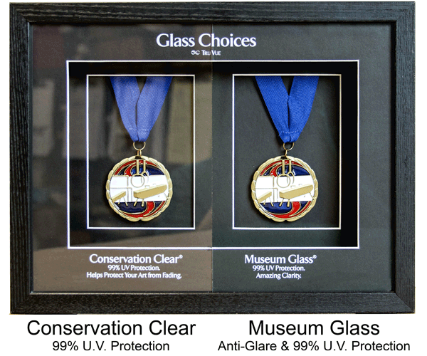 We offer a variety of options to protect your artwork from fading and deterioration, including U.V. filtering, shatter-resistant acrylic, and regular glass with U.V. protection. For the ultimate in anti-reflective coatings, we provide Tru Vue Museum Glass and Optium acrylic glazing.