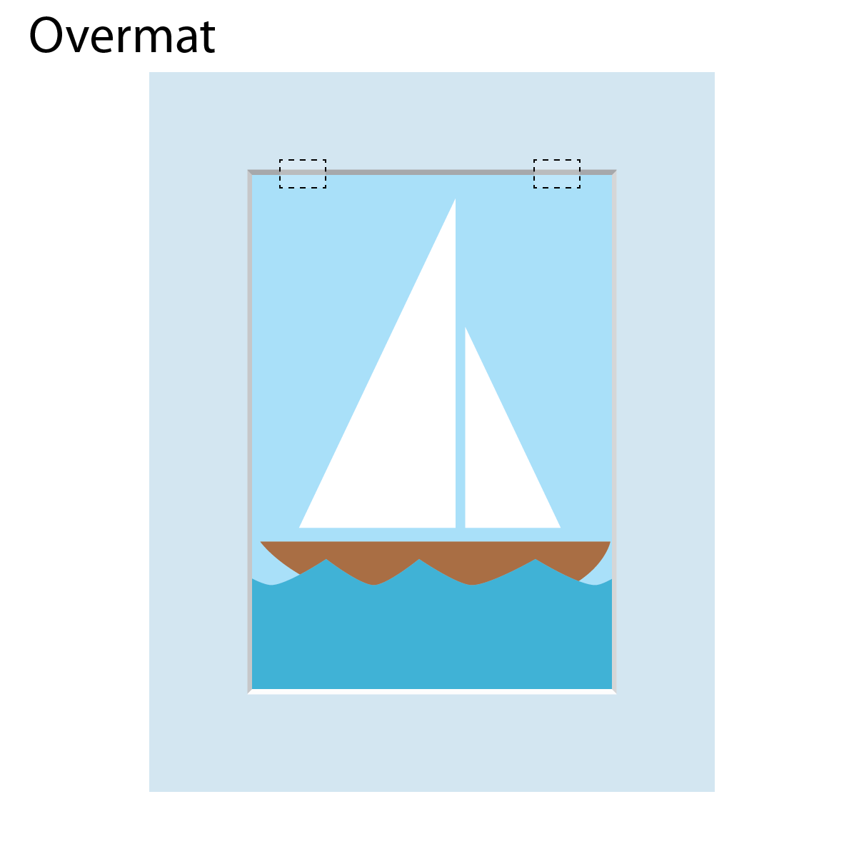 An overmat, or passe-partout, is what most people picture when they think of matting. It's a piece of matboard with one or more openings cut out to display the artwork. Typically, the opening is at least 1/4" smaller than the artwork to allow the mat to overlap and protect the edges. This rule may be adjusted if a float mount is also used.